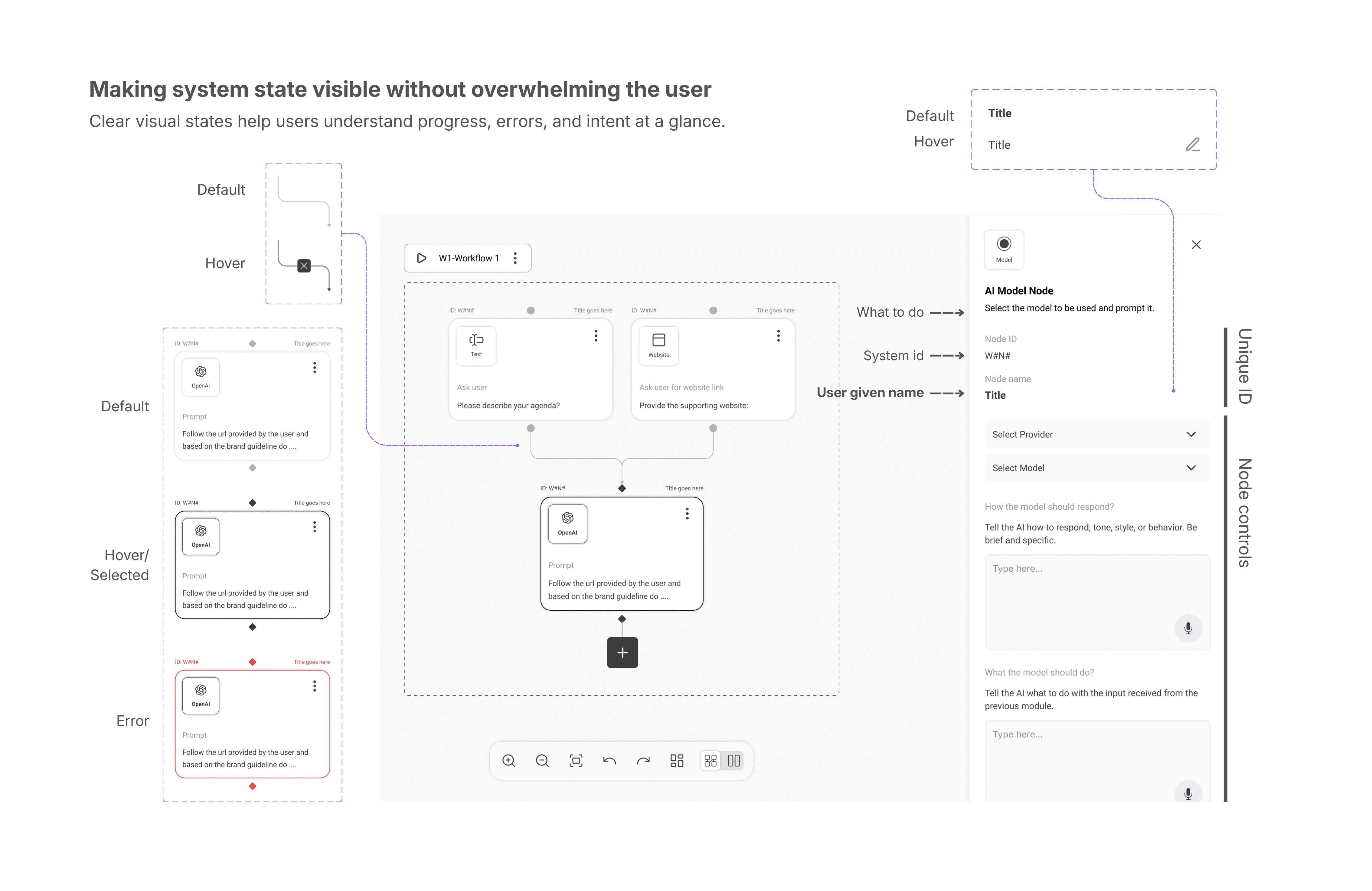 The visual and interaction design focused on making complex AI systems understandable, controllable, and safe for non-technical users through clear mental models and progressive disclosure.