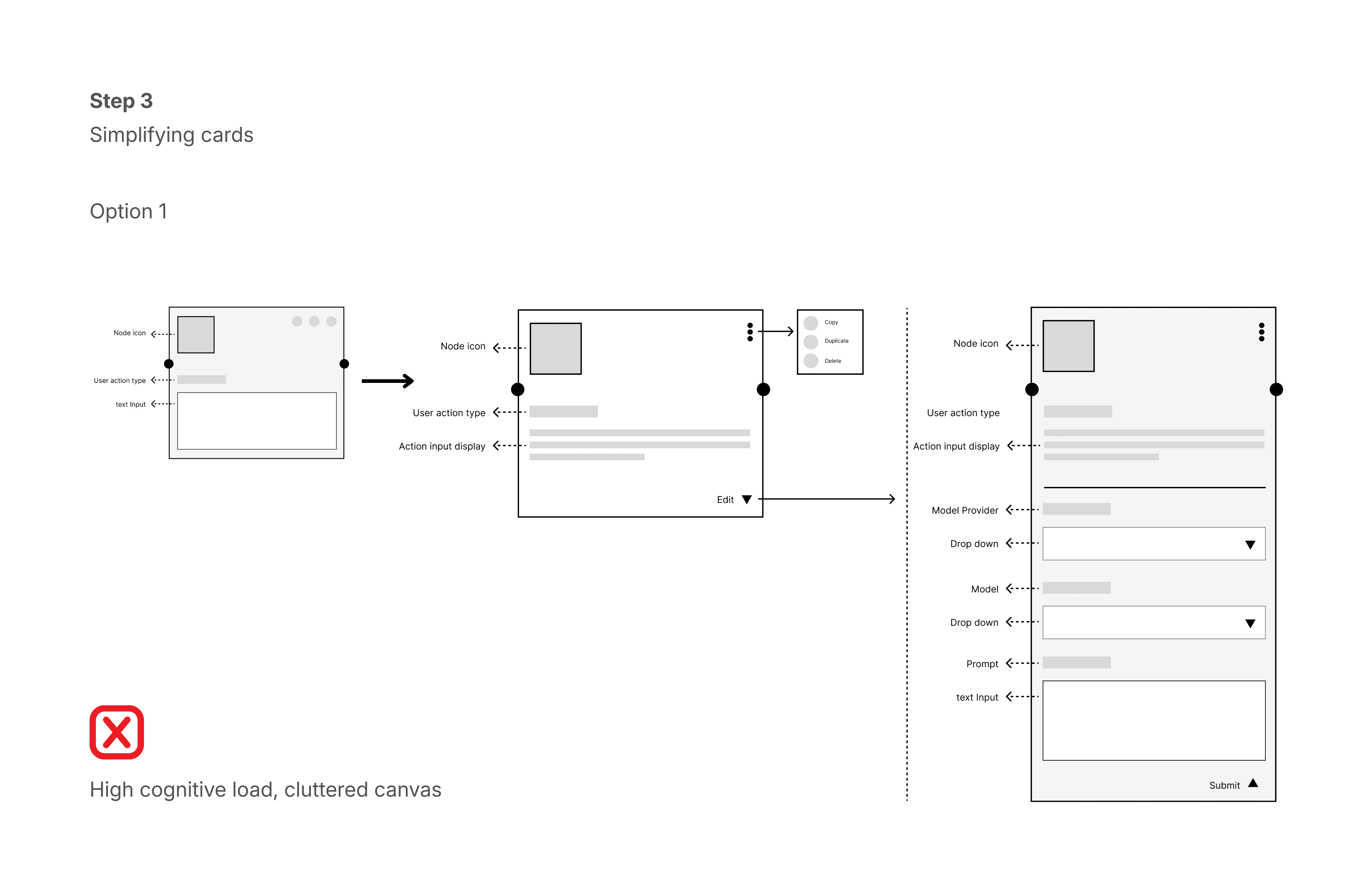 Rather than polishing Phase 1, we changed the foundation. The shift was from blocks that represent components to cards that communicate intent