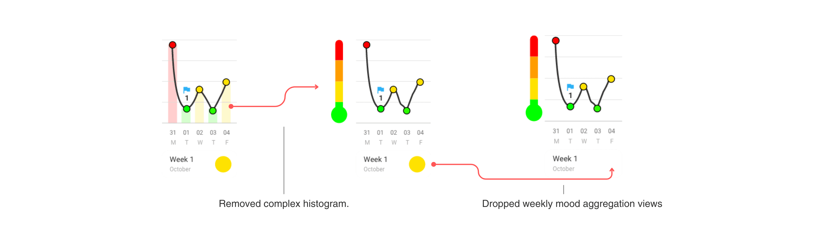 Multi-parameter charts added processing overhead and slowed page loads on school devices.Dropped weekly mood aggregation views