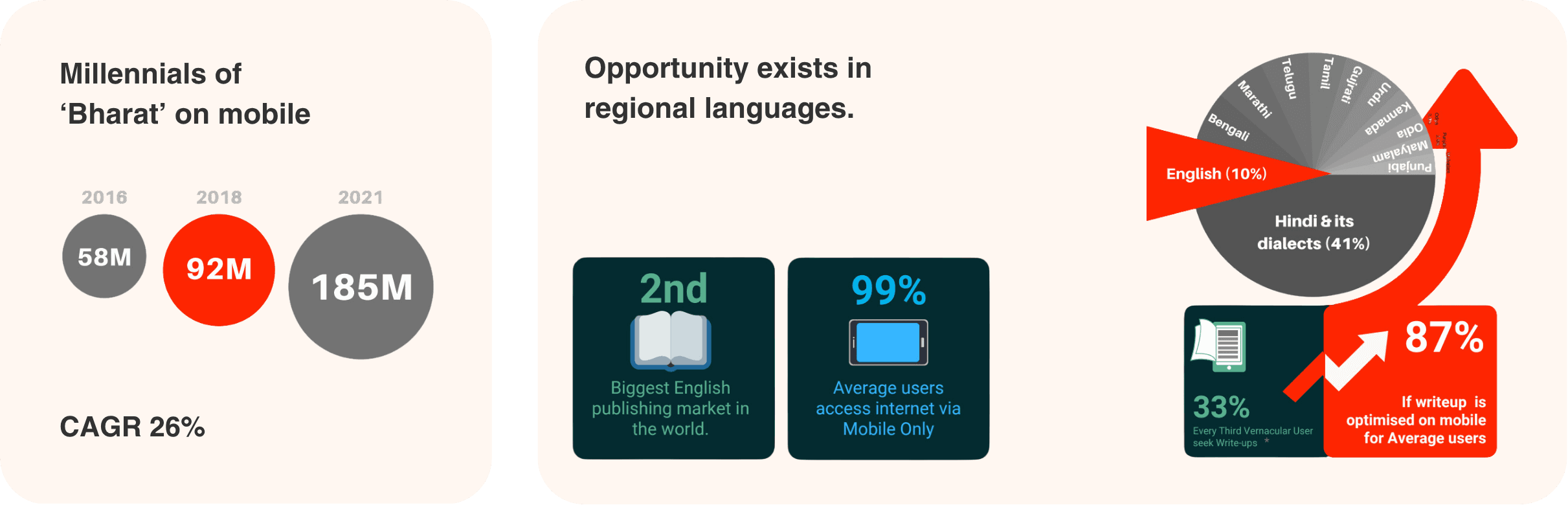 92M impulsive and young, vernacular mobile users seek write-ups, but refined and curated reads are inaccessible in simple and financially sustainable way.