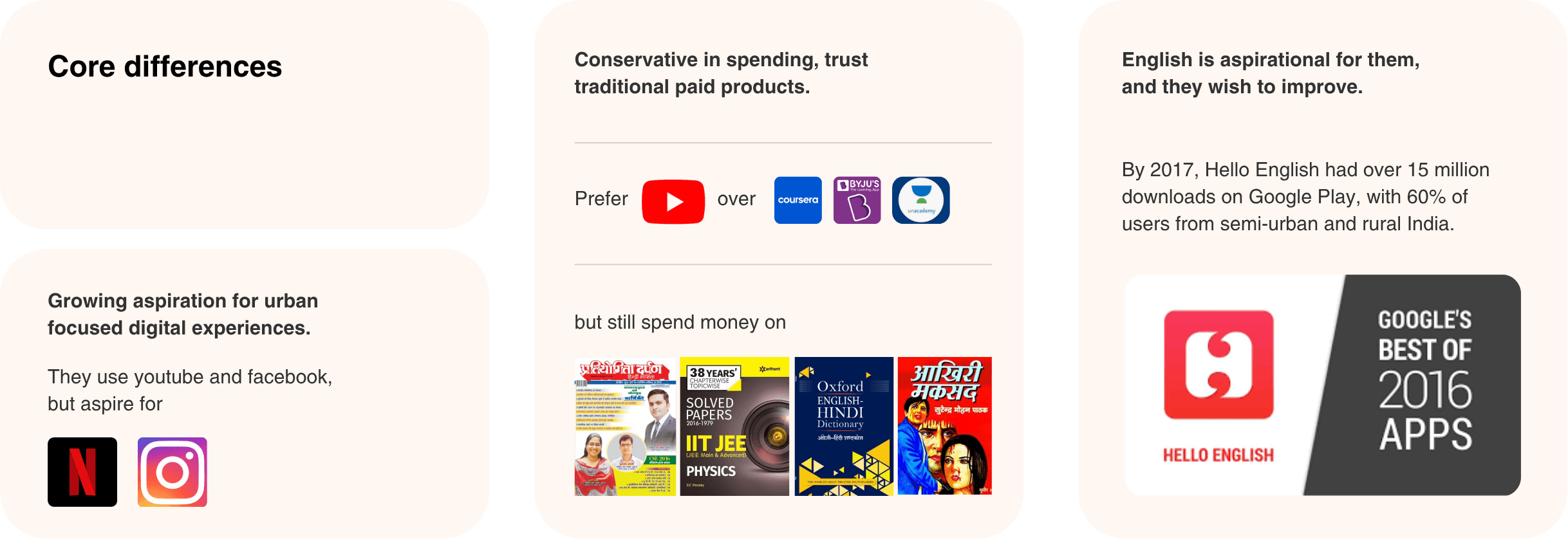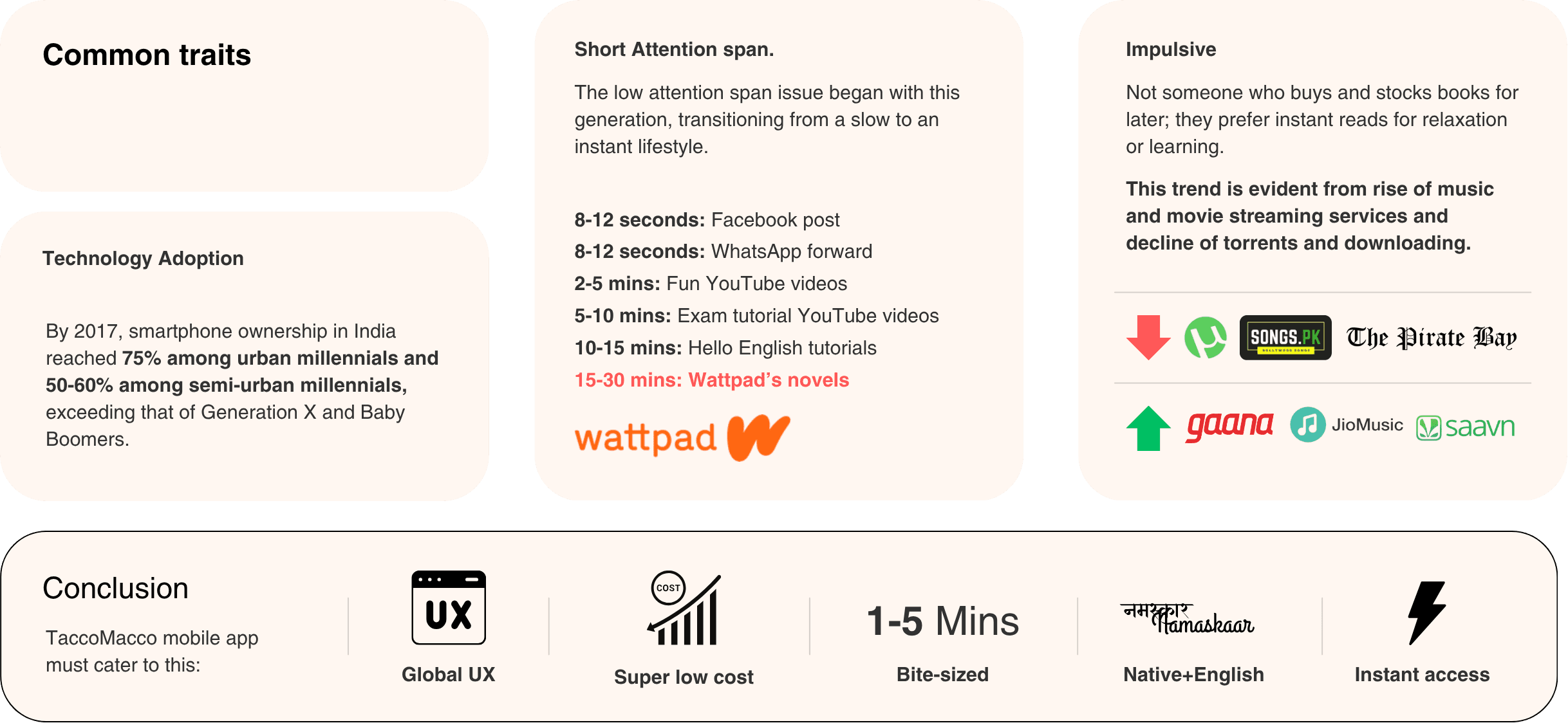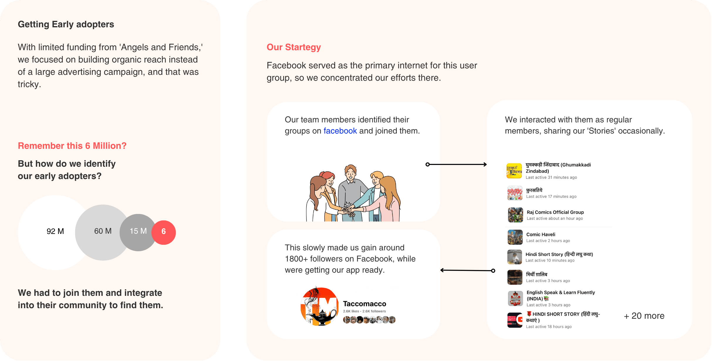 We focused on users aged 18 to 30 (Millennials) in rural and semi-urban areas. As a small startup in content generation, we chose to start with one language and plan to scale later. This user group forms: