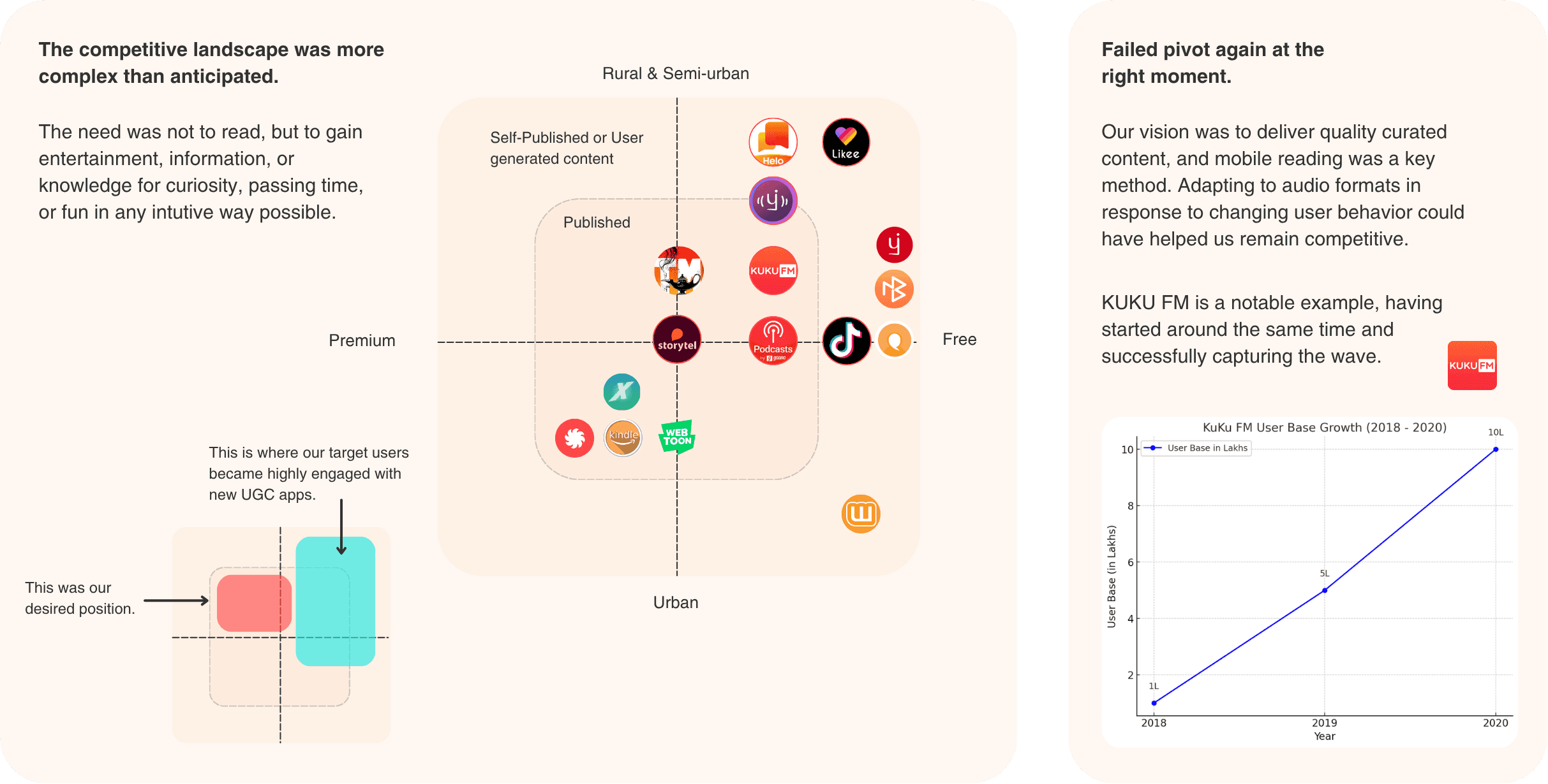 The market wasn’t about reading – it shifted to entertainment-first, UGC-driven consumption, and missing the audio pivot meant losing the moment.
