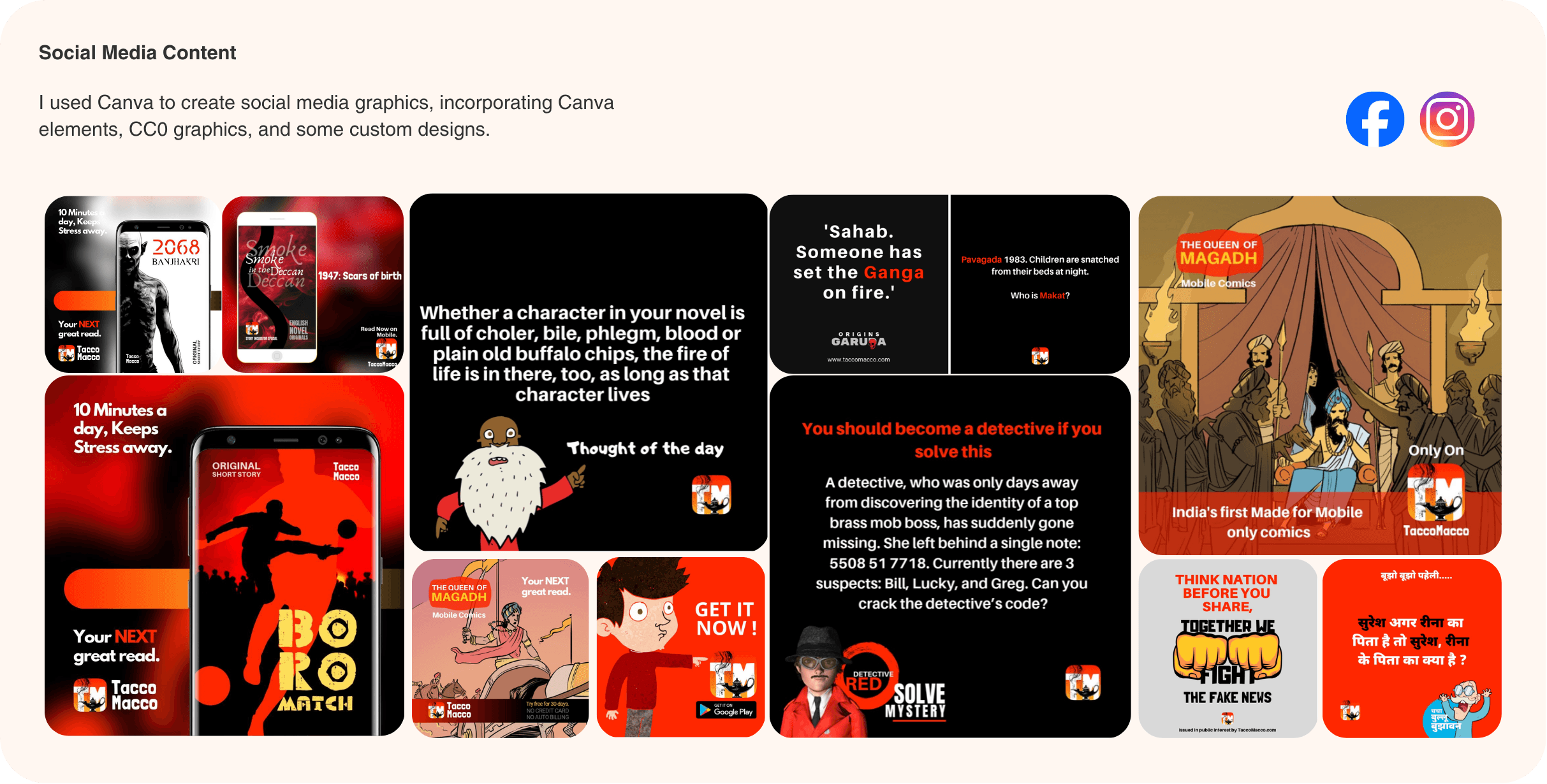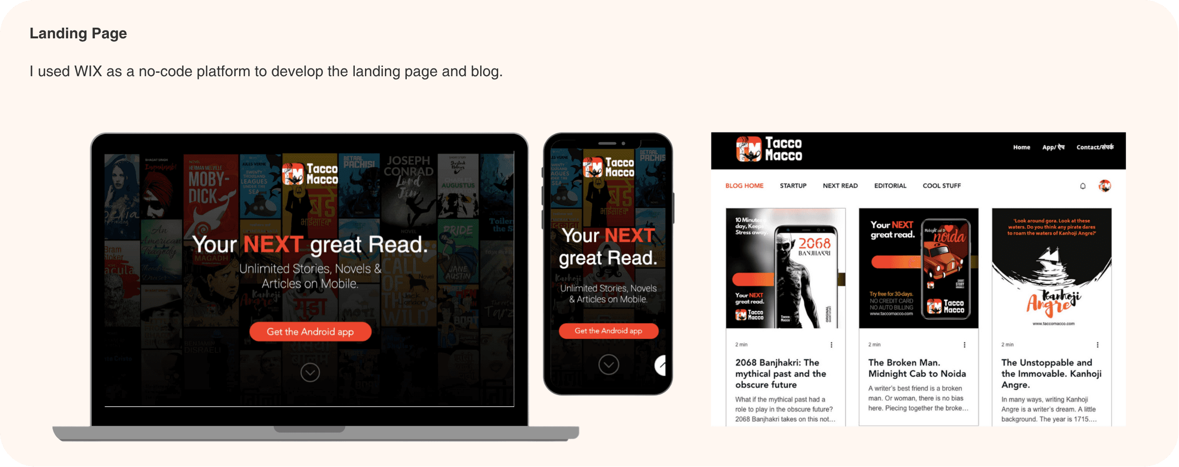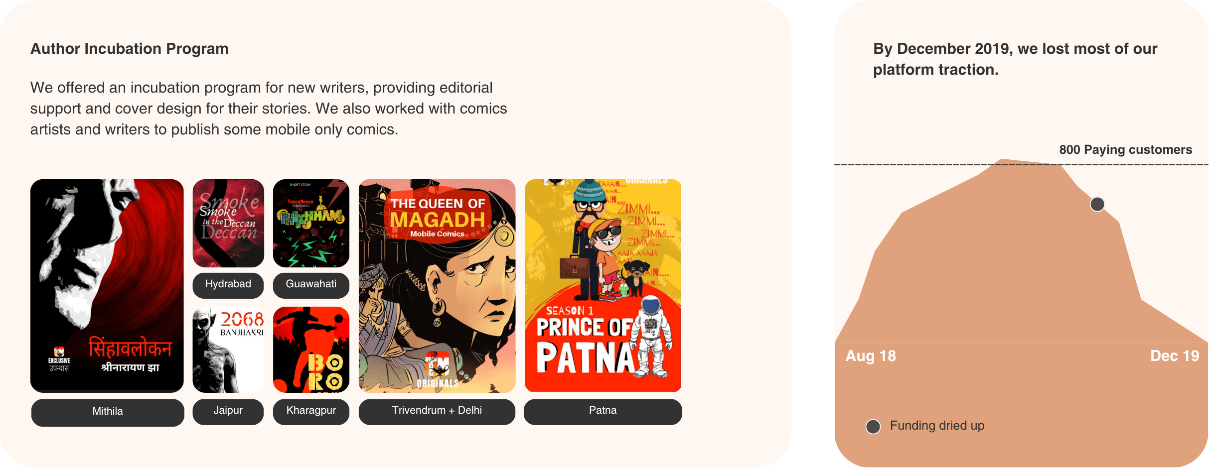In 2016, I co-founded TaccoMacco with Gaurav to share Indian stories. By 2017, we pivoted to a mobile-first platform for short stories, novels, and comics, empowering self-publishing and catering to vernacular India (Bharat).
