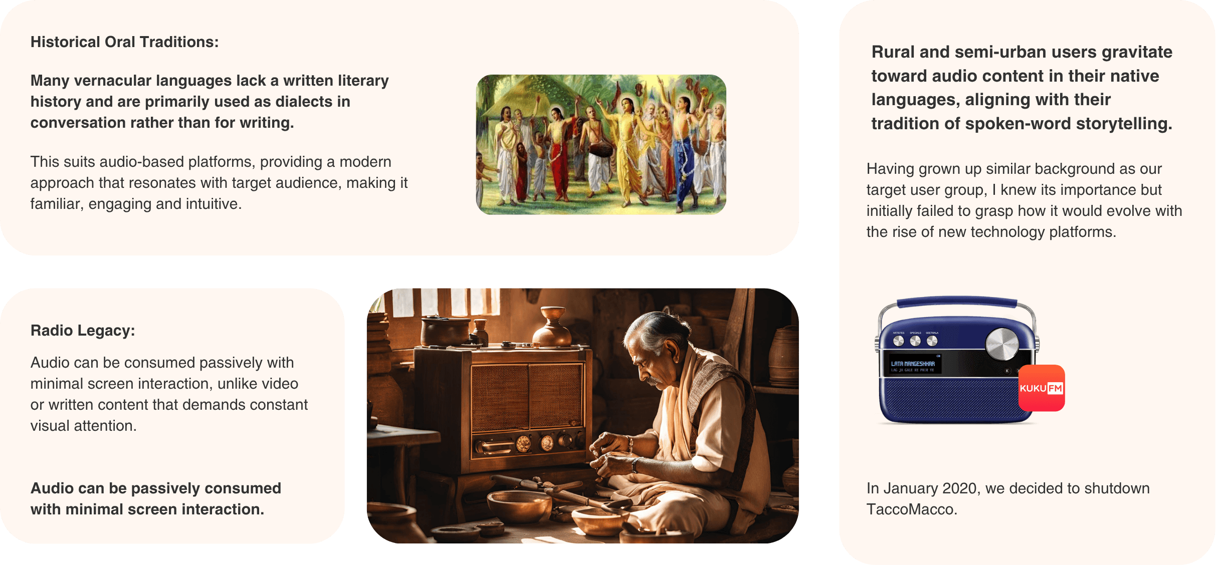 User behavior wasn’t built for reading – it was rooted in oral, passive, vernacular storytelling – making audio the most natural and scalable format.